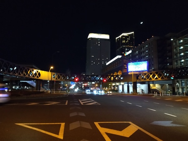 年末の深夜のガランとした道路を、街灯の光が照らしています。