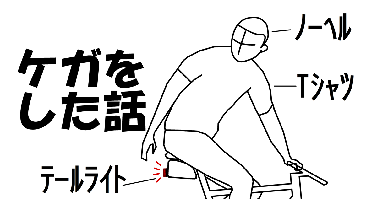 「あ、やべ」と思うのと、アスファルトに叩きつけられるのが同時でした。叩きつけられながら、背筋にチカラをいれてのけぞり、ボディを犠牲にしてでも頭や顎や顔面を強打しないようにしたのを覚えています。起き上がるとすぐ、後続の車に轢かれないよう、歩道に退避しました。