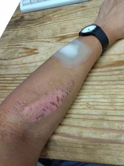 こんな感じでケガはだんだん治ったのですが、治った肌は白いのですよね。夏のあいだに日焼けした肌にくらべて、色が白いです。今もまだそういう状態ですので、夏、またコンガリ焼くしかないですね。