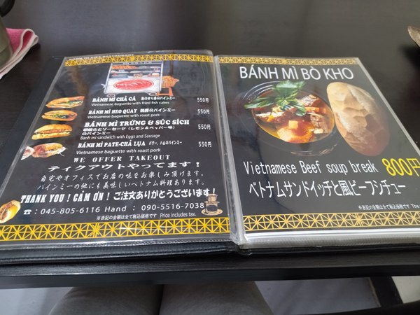 境川サイクリングロード(CR)沿いの、いちょう団地の近くにあるベトナム料理のお店です。バインミー(ベトナムのサンドイッチ)が美味しくて有名です。野菜がフレッシュでシャキシャキでヘルシー。具の焼豚もタレが染みてて、パンはトーストされていてモッチリフワフワホカホカ。ここのバインミーはオススメです。